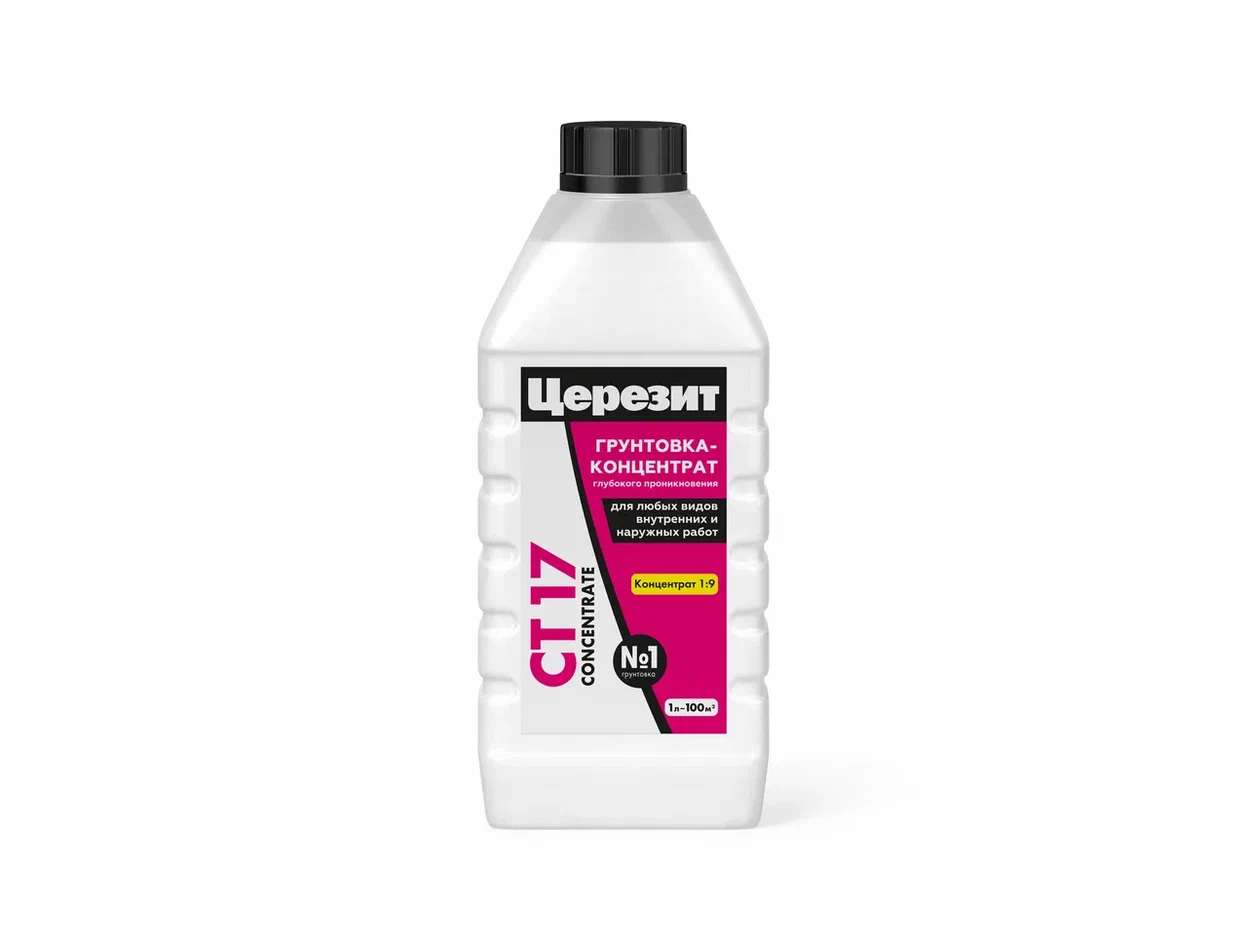Грунтовка CT 17 Concentrate предназначена для обработки впитывающих, сильно впитывающих и непрочных оснований — цементных, известковых и гипсовых штукатурок, цементных, гипсовых и ангидритных стяжек, легкого и ячеистого бетона, кладок из керамического и силикатного кирпича, природного камня, древесностружечных и древесноволокнистых плит, гипсокартона и т.п. — перед нанесением выравнивающих штукатурных и напольных смесей, плиточных клеев, полимерных гидроизоляционных мастик, креплением систем теплоизоляции фасадов (СФТК) и т.д.Обладает высокой проникающей способностью, снижает впитывающую способность оснований, связывает пыль, укрепляет поверхность, предотвращает пересыхание тонкослойных выравнивающих смесей, повышает адгезию материалов к основанию, повышает растекаемость напольных смесей и предотвращает появление пузырьков воздуха на их поверхности.