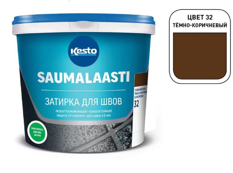 Kesto Saumalaasti — затирка c cверхнизким выделением вредных летучих веществ для заделки швов между кафельными и клинкерными плитками, а также между другими керамическими материалами. Ширина шва 1-6 мм. Глубина шва должна быть не менее 3 мм. Раствор подходит для заполнения швов на полах и стенах внутри и снаружи помещений.Область применения